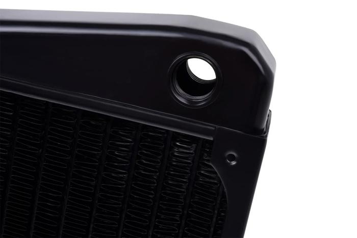 The fin spacing was chosen so that the radiator could reach its optimal cooling performance even with slow or medium-speed fans. This is not only comfortable in terms of background noise, but also puts no constraints on the choice of fans.