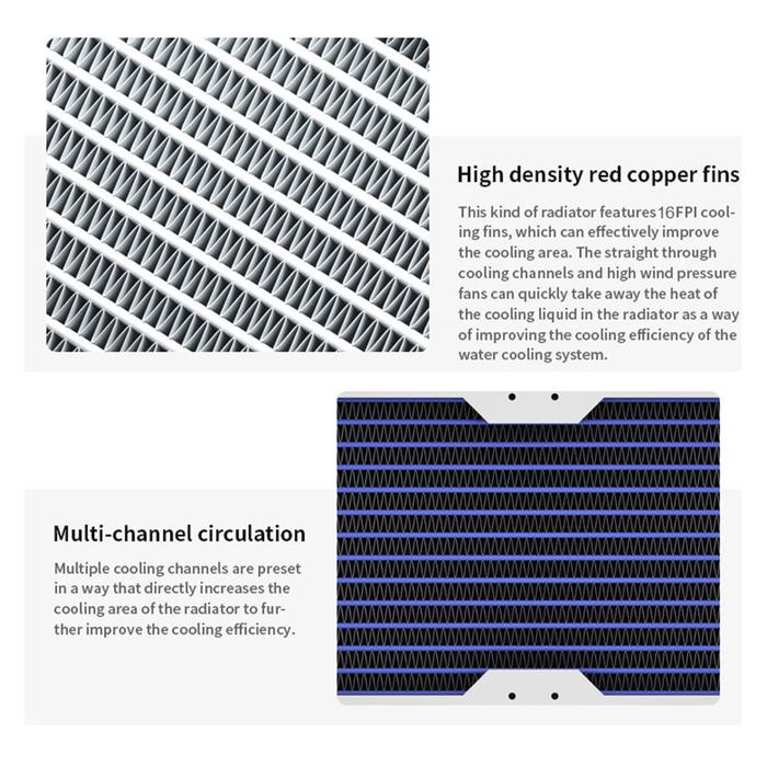 BARROW Dabel-20a series radiators are a high density copper radiator and measure in at 20mm thick, suitable for most standard and compact chassis to install and use. Waterways pure copper material, water chamber brass, stainless steel fan mounting bracket. 120-240-360-480 four lengths with specifications, using high-density single waterway wave fin design can provide better heat transfer performance and more more air contact area to help improve and enhance the cooling capacity of the cold row, providing the same level of a higher level of thermal performance.
