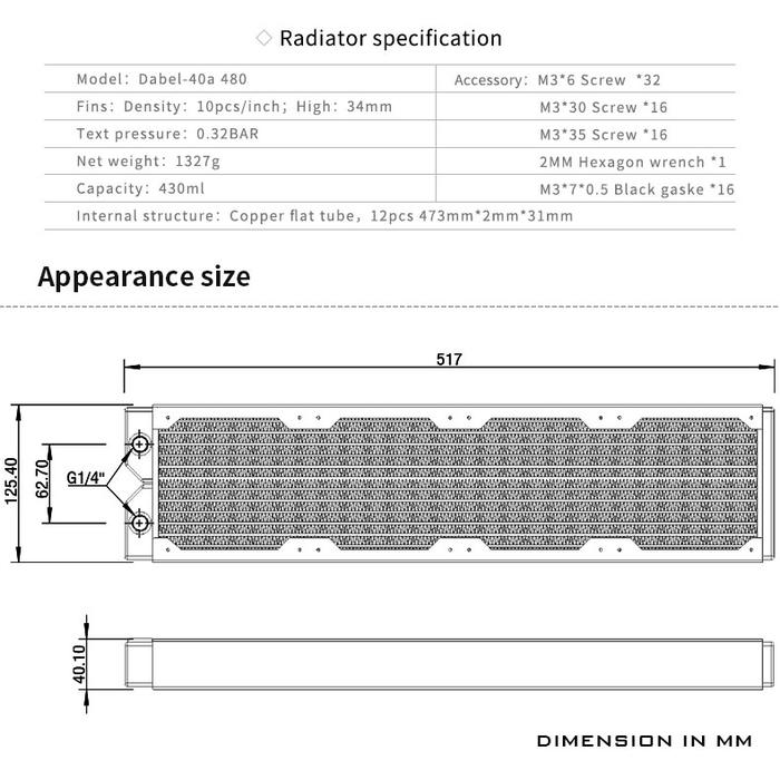 BARROW Dabel-40a 480 Cooper Radiator 480mm (Ketebalan 40mm)