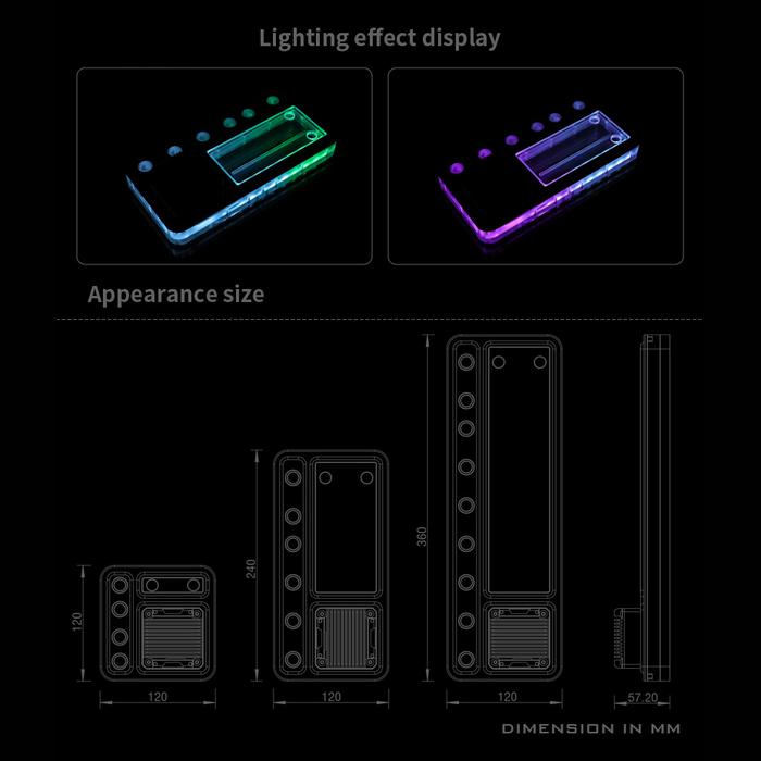 Reservoir ini menggunakan lubang mounting yang sama dengan ukuran Fan / Radiator 120mm , 240mm dan 360mm. Silahkan sesuaikan dengan ukuran casing dan posisi pemasangan reservoir di casing anda.