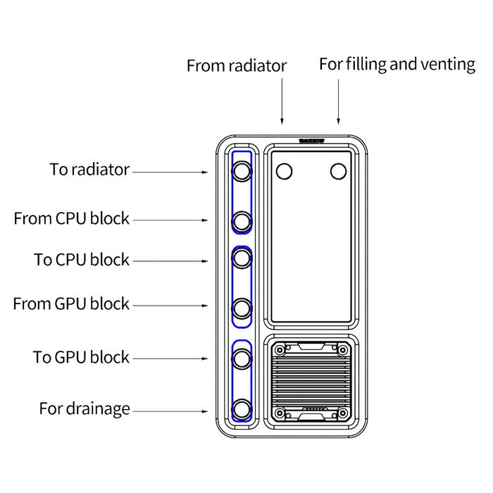 Reservoir ini menggunakan lubang mounting yang sama dengan ukuran Fan / Radiator 120mm , 240mm dan 360mm. Silahkan sesuaikan dengan ukuran casing dan posisi pemasangan reservoir di casing anda.