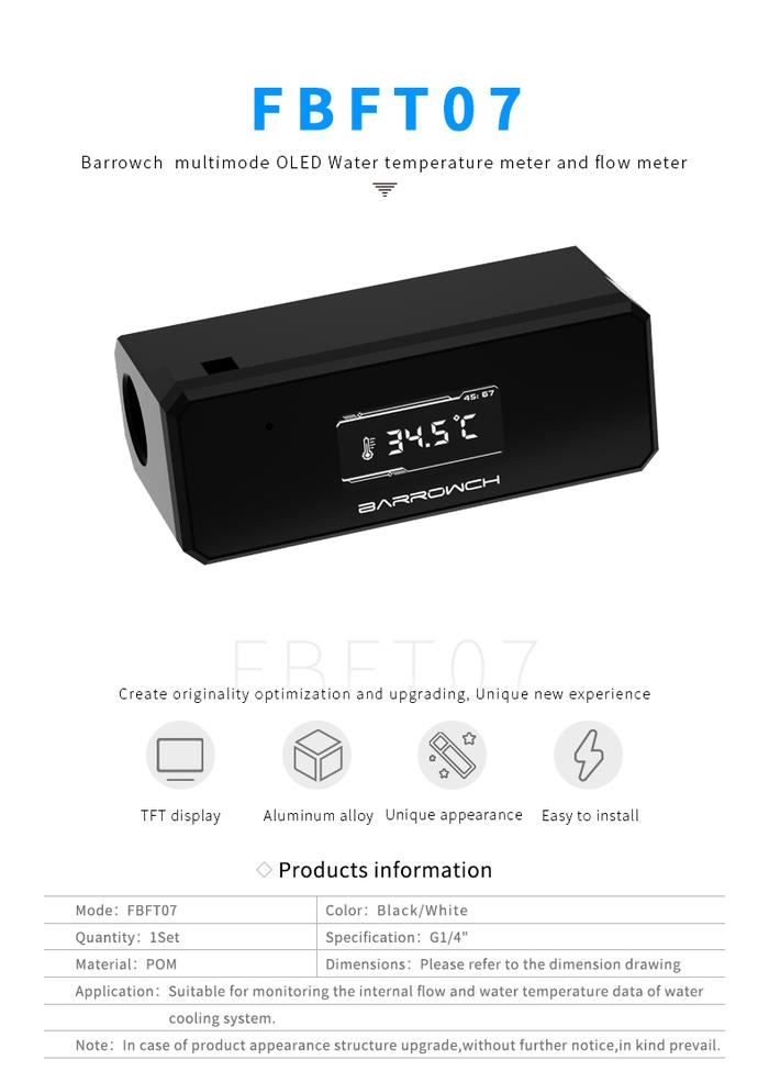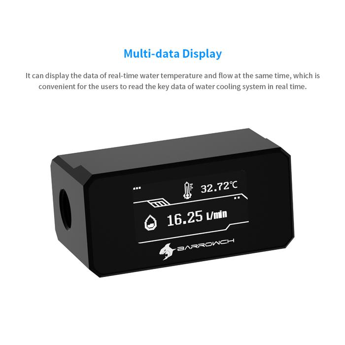 BARROW FBFT07 Multimode OLED Water Temperature and Flow Meter Black