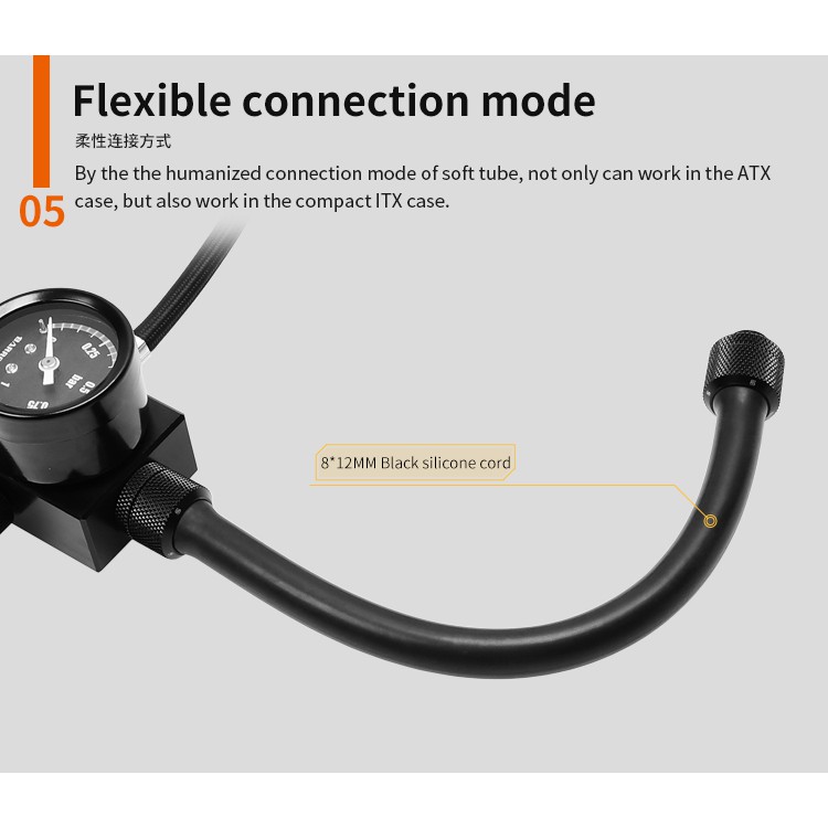 Di gunakan untuk test tekanan udara di dalam loop Water Cooling untuk memastikan tidak ada kebocoran di sistem water cooling sebelum di isi Coolant.