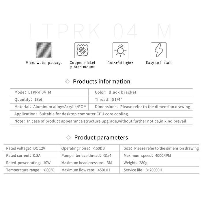 BARROW LTPRKA-04 M AMD CPU Water Block w/ 10W Pump and Reservoir White