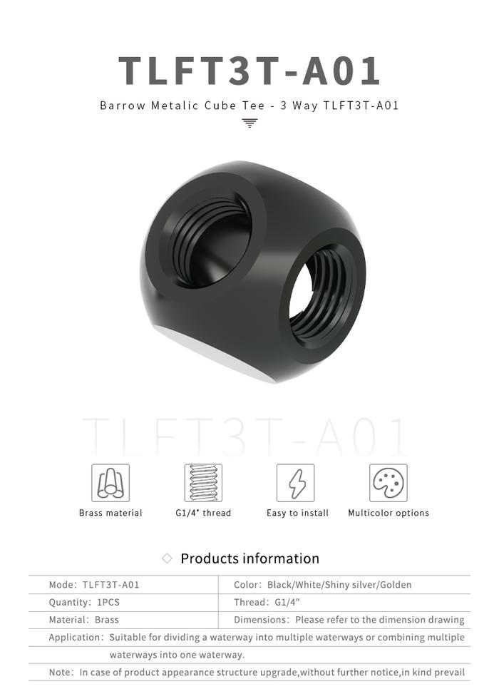 Home Custom Water Cooling Fittings Other Fitting BARROW TLFT3T-A01 G1/4 Thread 3-Way Block Splitter Fitting – White