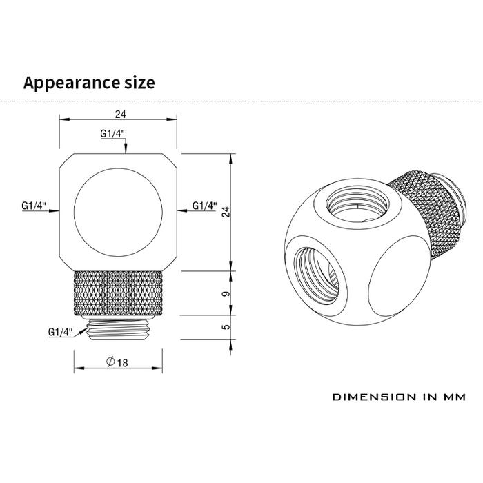 BARROW TX4T-A01 Rotary Cube Tee – 4 Way Splitter Silver