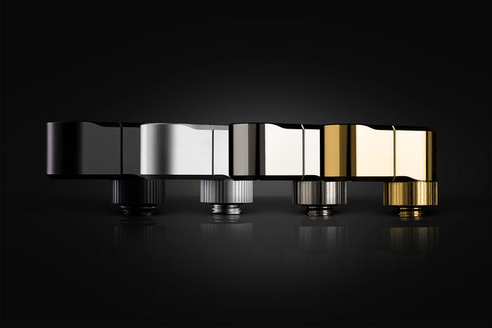 EK-Quantum Torque Double Rotary Offset 28 is a premium revolvable male+female threaded 28mm offset adapter fitting with two separate joints, each with its own rotating mechanism. It is commonly used to offset two parallel or perpendicular tubes and is best used on GPU and CPU water blocks to align the tube directly with the distribution plate port. Aesthetically, it perfectly matches the fittings and adapters from the EK-Quantum Torque series. These fittings effectively replace the following three products – the rotaries angled 45 and 90, and a 7 MF extender.