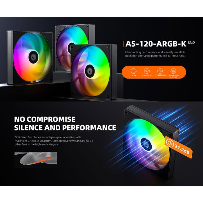 ID-COOLING AS-120-ARGB-K TRIO BLACK 120mm Silent Addressable LED Sync PWM Fan Triple Pack