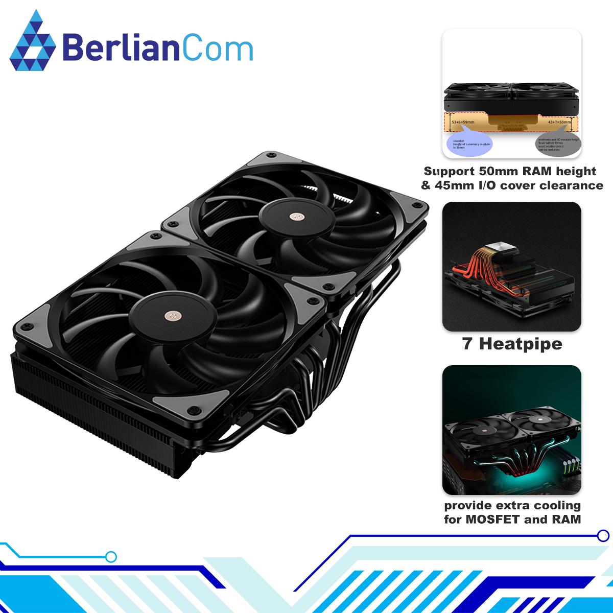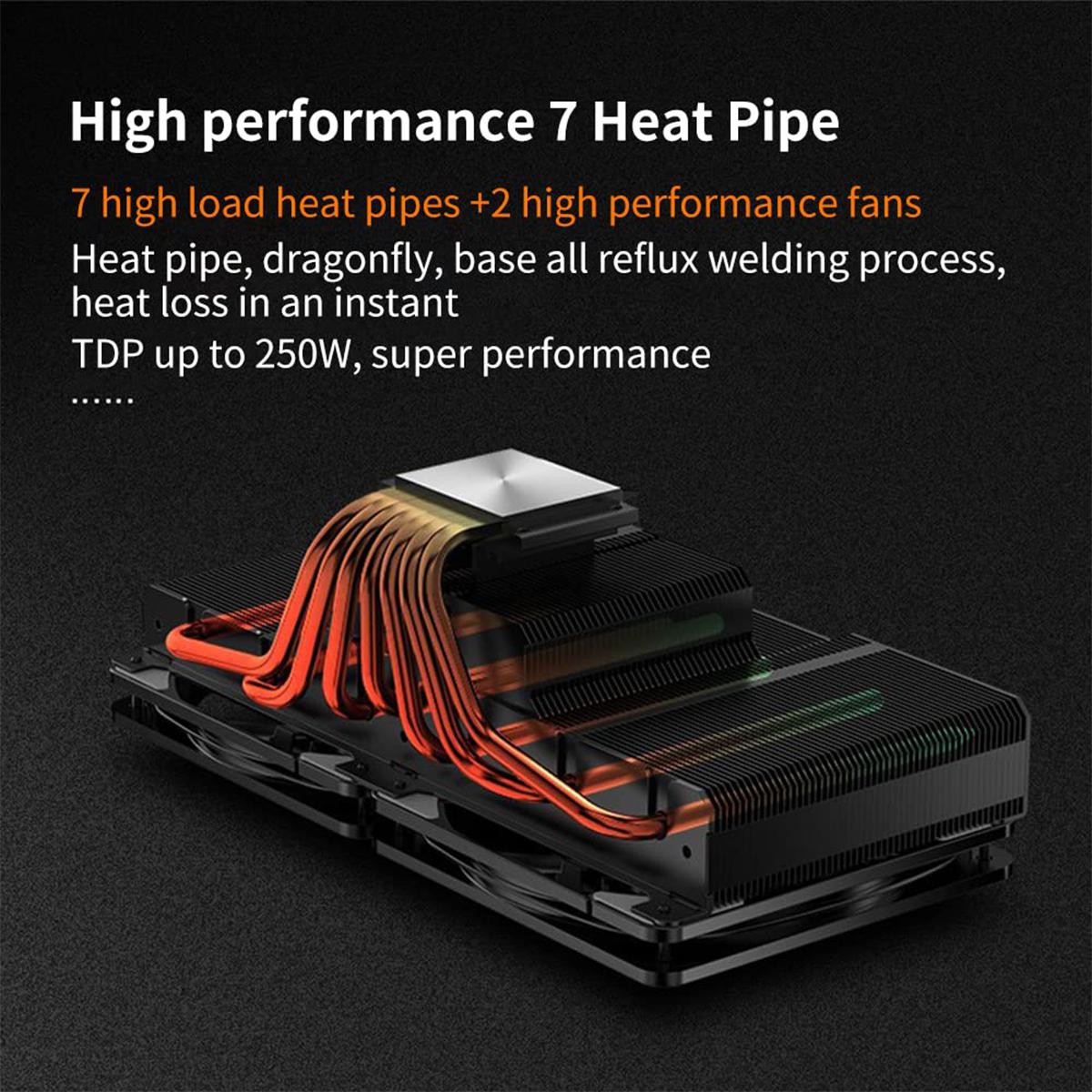 JIUSHARK JF13K DIAMOND BLACK CPU Cooler Dual Fan Top Flow 7 Heatpipe INTEL AMD