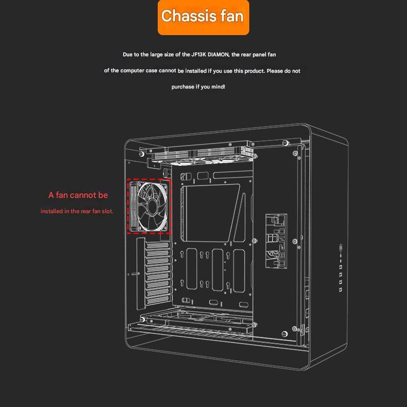 Karena ukuran cooling ini yang cukup besar fan belakang pada casing tidak bisa di pasang bila menggunakan CPU Cooler ini.Info detail di foto produk