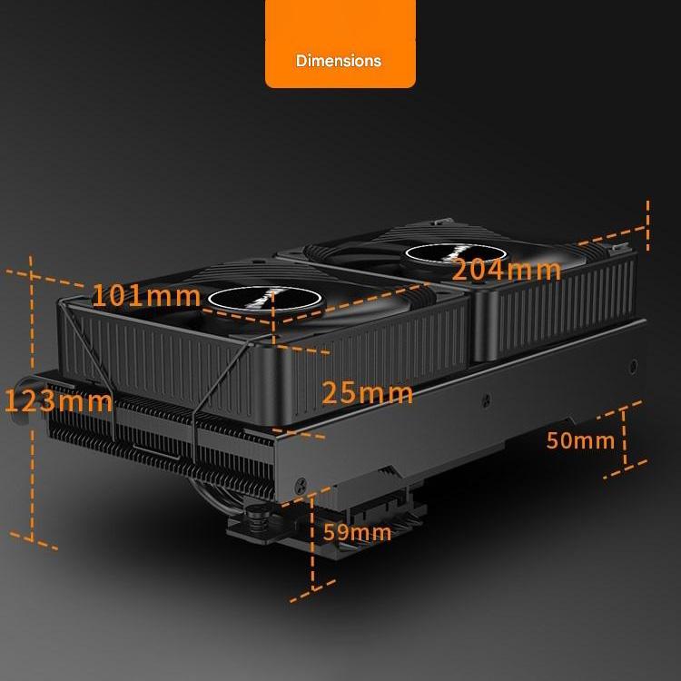 JIUSHARK JF13K MINI DIAMOND BLACK CPU Cooler Dual Fan Top Flow 6 Heatpipe INTEL AMD