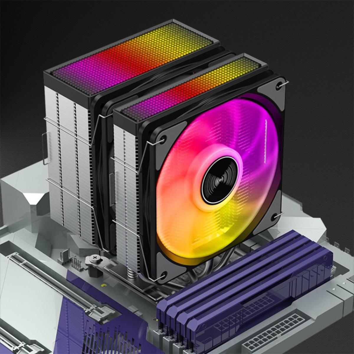 JIUSHARK JF400D BLACK ARGB CPU Cooler Dual Tower Dual Slim Fan 4 Heatpipe INTEL AMD
