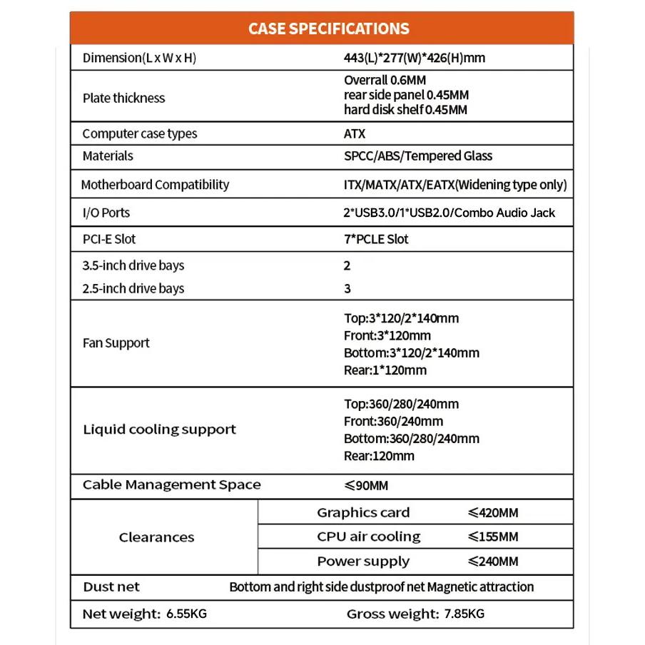 Untuk detail informasi spesifikasi lainnya dari casing ini ada di gambar produk