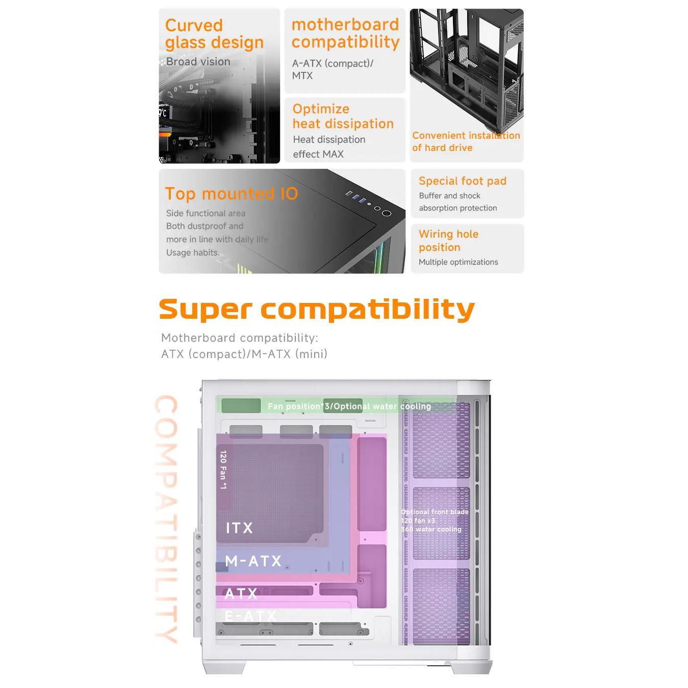 JUNGLE LEOPARD AC-01 WHITE Curved Glass ATX Gaming PC Case Casing Komputer