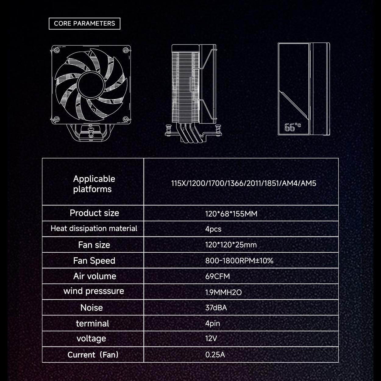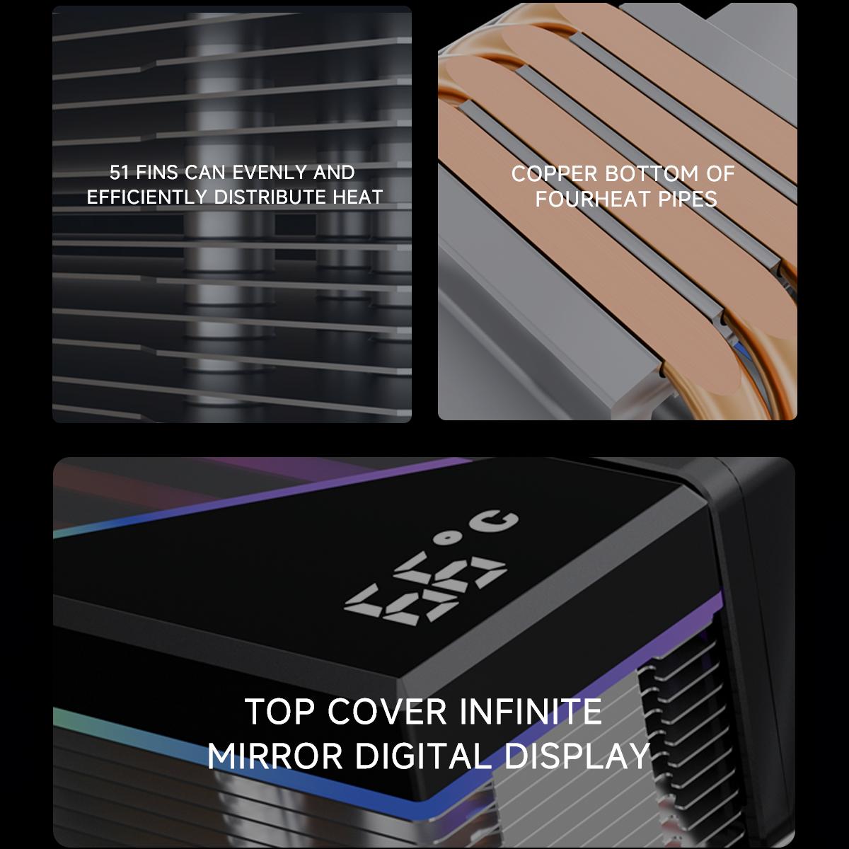 JUNGLE LEOPARD KF420E-DGT DIGITAL ARGB RAINBOW BLACK CPU Cooler 4 Heatpipe Intel AMD