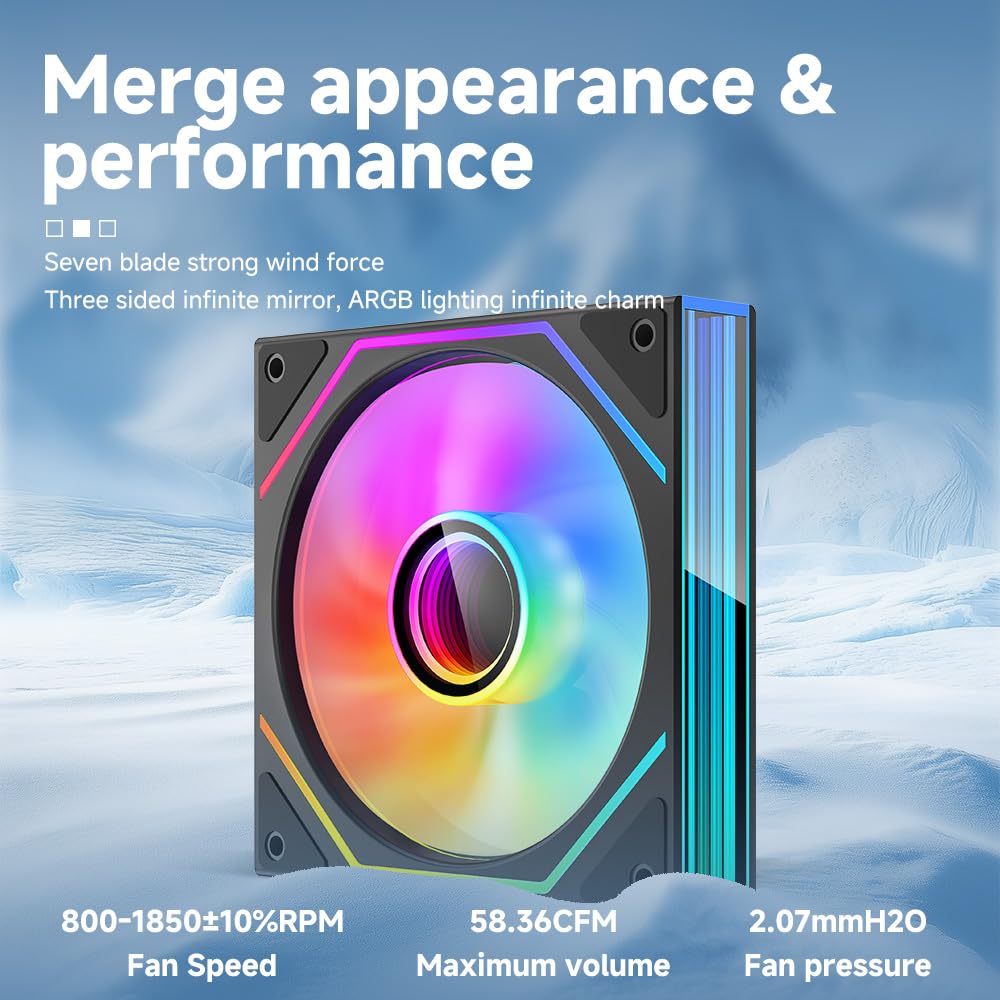 JUNGLE LEOPARD Prism 6 MAX ARGB BLACK REVERSE Three Sided Infinity Infinite Mirror 120mm PWM Fan