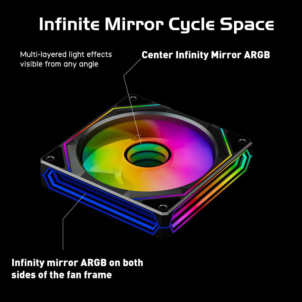 JUNGLE LEOPARD Prism 6 PRO ARGB BLACK Three Sided Infinity Infinite Mirror 120mm PWM Fan