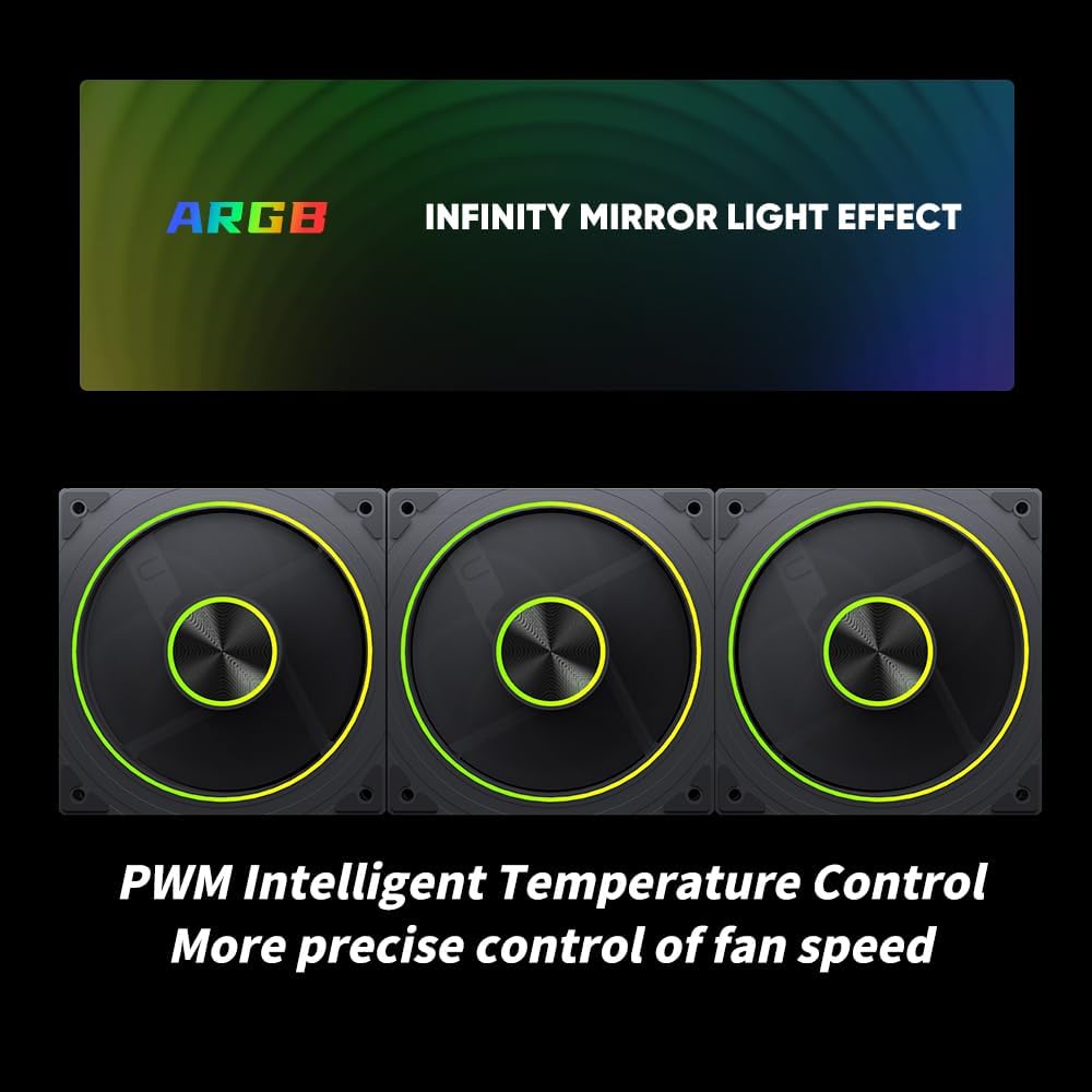 Home Fan & Accessories 120MM Fans JUNGLE LEOPARD TRANSWARP 12 ARGB BLACK REVERSE Ring LED Infinite Infinity Mirror 120mm PWM Fan