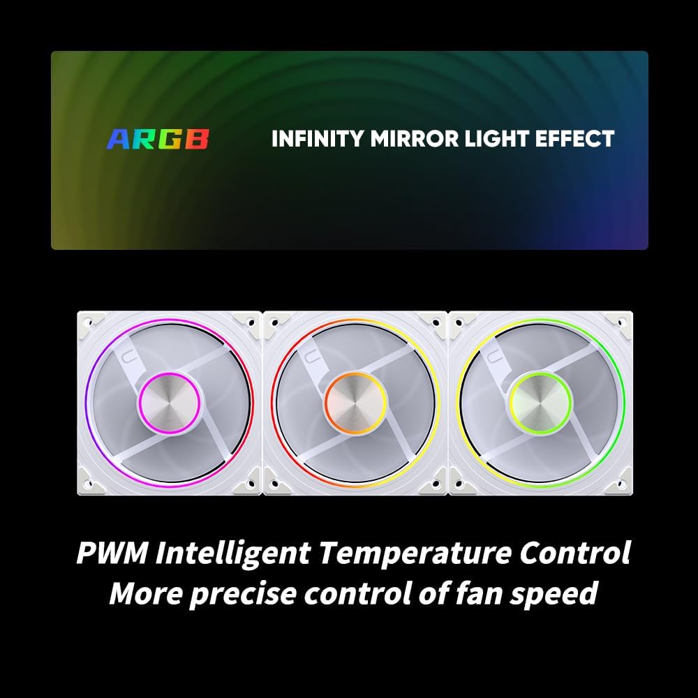 JUNGLE LEOPARD TRANSWARP 12 ARGB WHITE REVERSE Ring LED Infinite Infinity Mirror 120mm PWM Fan